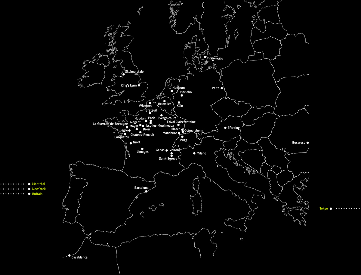 A l’exportation, les équipes commerciales de filiales implantées au cœur des marchés permettent de faire remonter les commandes sur ces bases logistiques, puis sur les sites de production. Ces filiales ont pour nom Exaclair ou Quo Vadis.